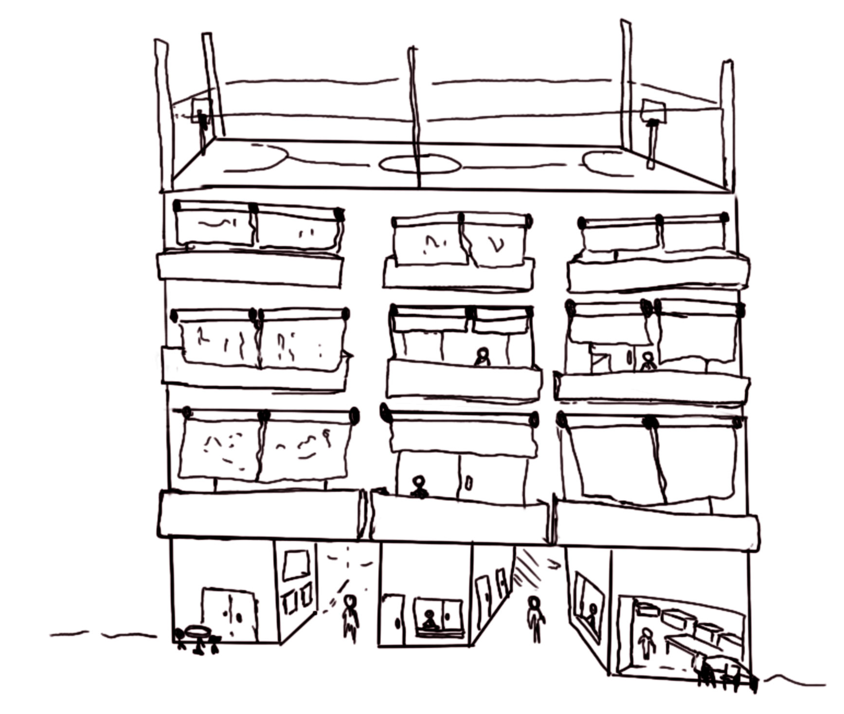 Integrating familiar cultural elements, communal spaces, and sustainable features creates welcoming environments that ease transitions for newcomers. Our innovative design unites housing, hotel, and library into a cohesive whole with an open ground floor encouraging connection and accessibility. The roof plays a central role, providing shelter and acting as a communal sports and recreation space, symbolizing unity and promoting health and community spirit.